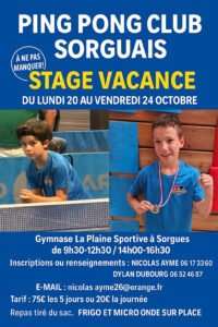 Stages vacances scolaires Des stages de tennis de table sont organisés au cours de chaque période...
